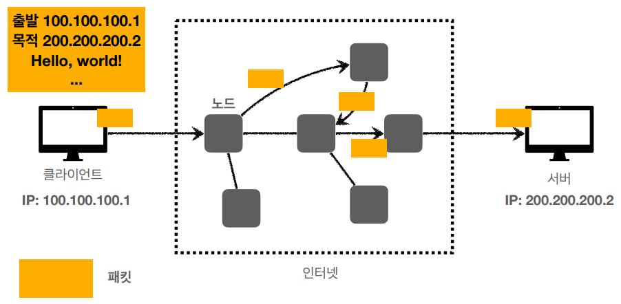 : 패킷(Packet)이라는 통신 단위로 데이터 전달