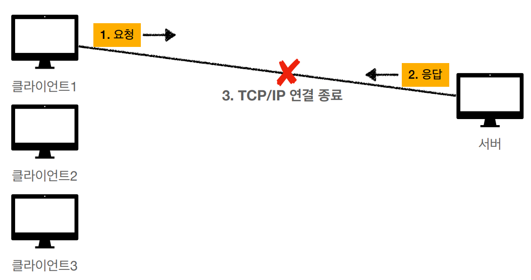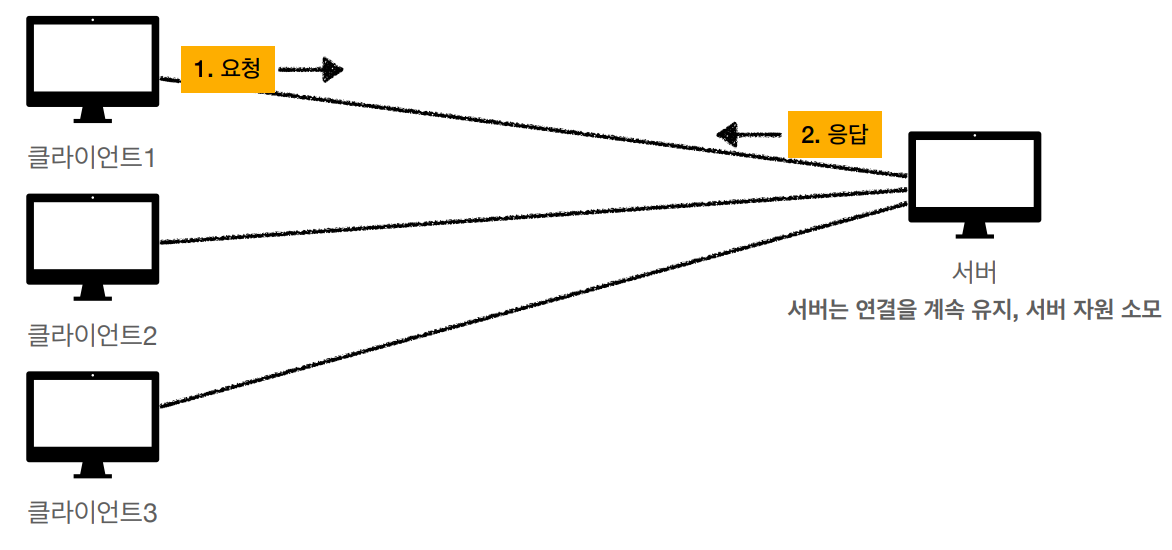 - 서버는 연결 유지 x, 최소한의 자원 사용