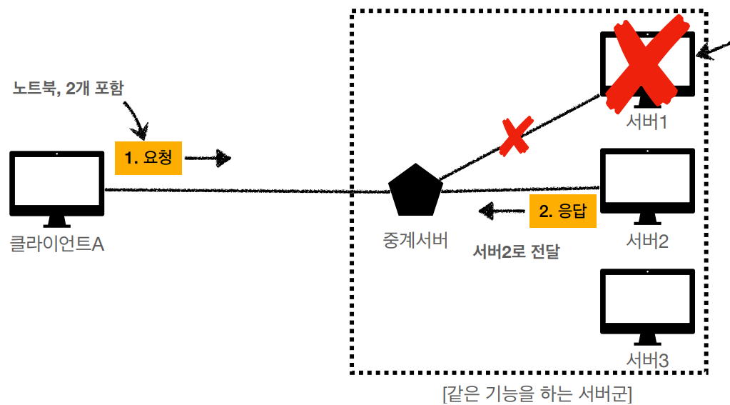 - 중간에 서버가 장애나면? → 중계서버가 서버1 대신 서버2로 전달