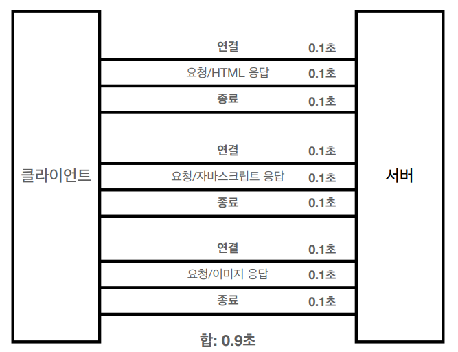- 지금은 HTTP 지속 연결(Persistent Connections)로 문제 해결
