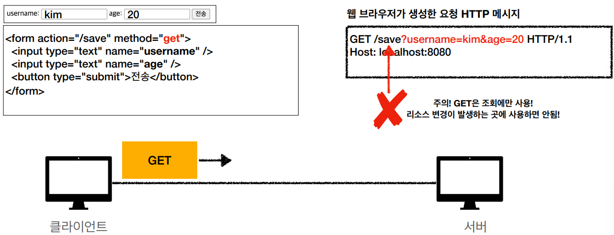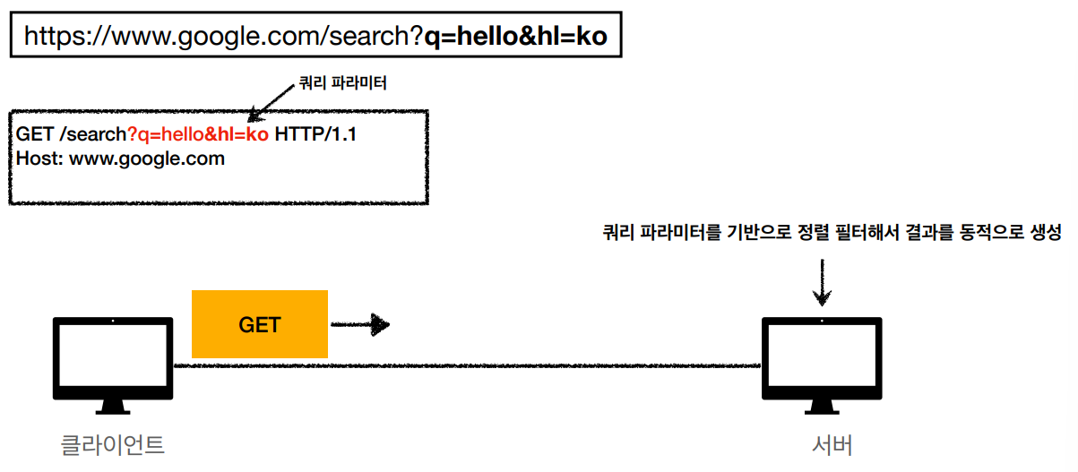 - GET은 쿼리 파라미터 사용해서 데이터를 전달