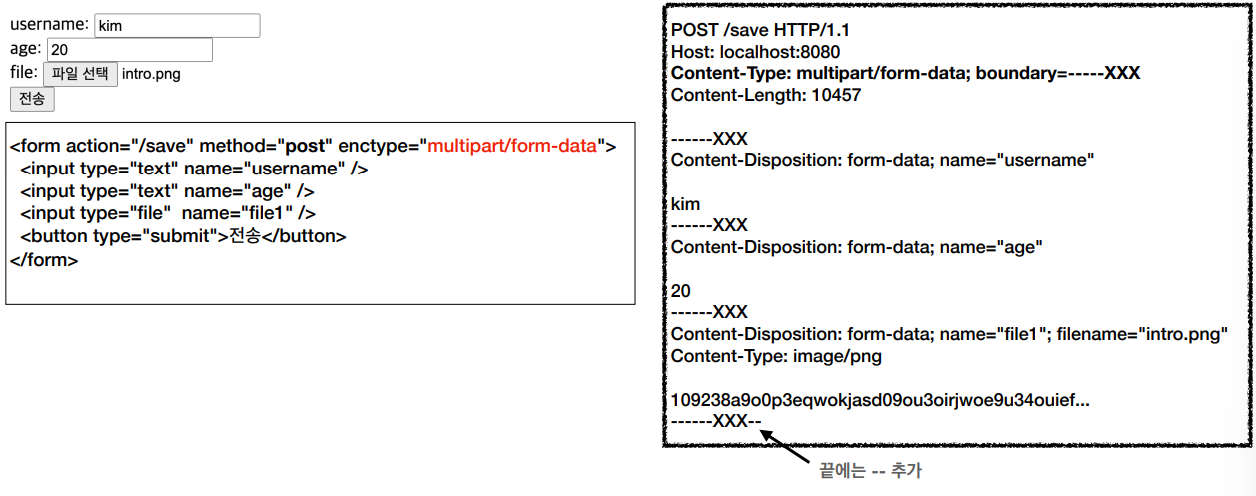 : 다른 종류의 여러 파일과 폼의 내용 함께 전송 가능 (그래서 이름이 multipart)
