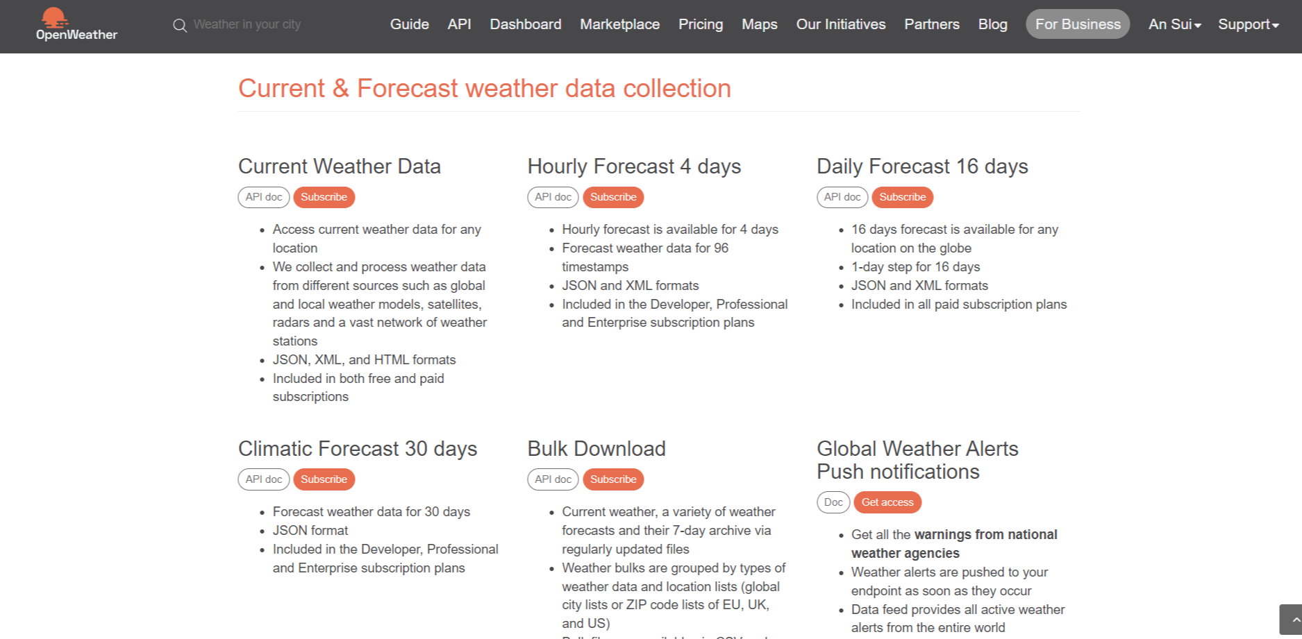 OpenWeather API에 들어가서 회원가입을 하고 로그인을 한다.