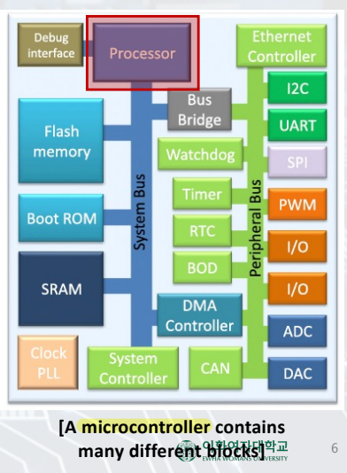 - 전형적인 microcontroller 디자인에서 processor는 sillicon area의 아주 작은 부분만 차지한다.