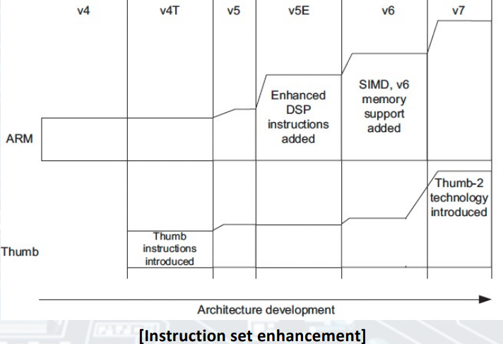 : ARM은 시간이 갈수록 new processors, new instructions를 개발하고 architectural features를 더해간다.