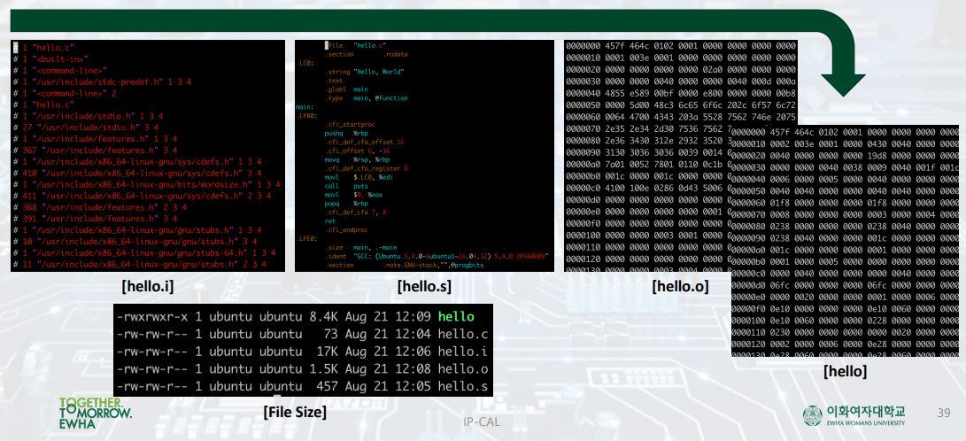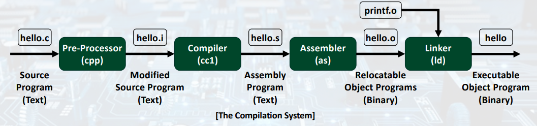 - 유닉스 시스템에서 source file을 object file로 translation하는 과정은 compiler driver에 의해 수행된다.