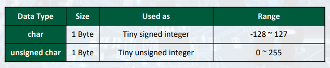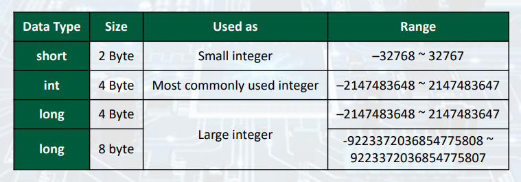 < Basic C Integer Data Types >