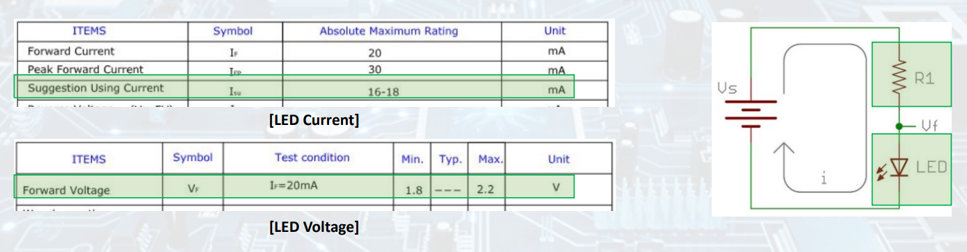 : LED가 켜져있다면 2V·20mA 허용