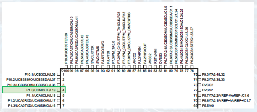 Pin#4 is connected to P1.0 Red LED and configured as GPIO.