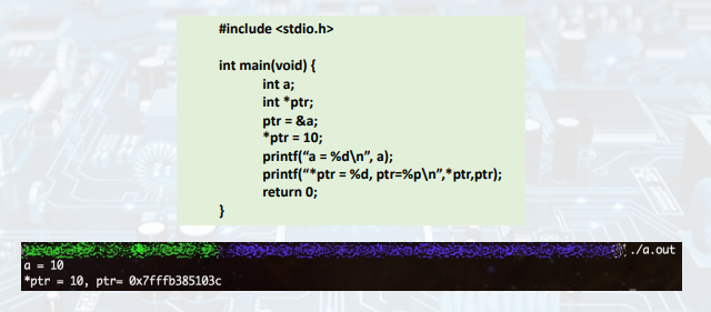 *ptr = 10; // 메모리 위치에 10 저장 -> a = 10