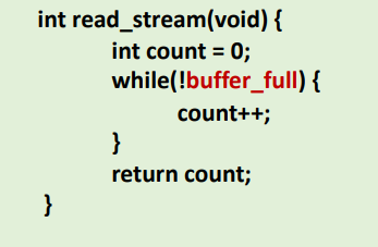 buffer_full을 volatile로 선언 X → 컴파일러가 값이 loop 외부에서 수정되지 않았다고 가정하므로 값 reloading을 생략