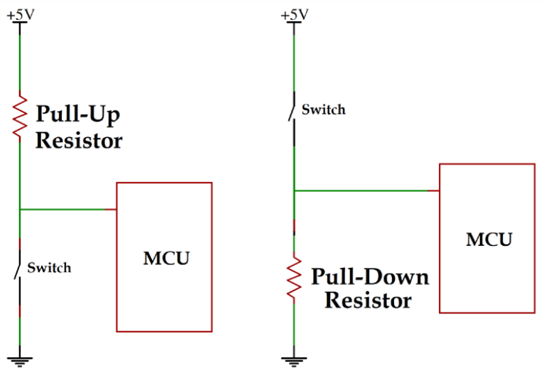 : floating 상태일 때 입력값이 HIGH인지 LOW인지 알 수 없는, 불확실한 상태가 발생하지 않도록 하기 위해 사용