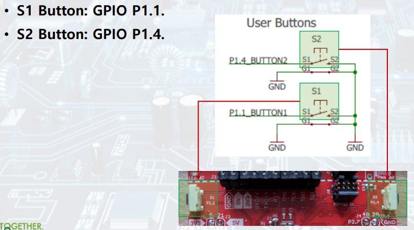 - Pull-up register: 스위치 떼면 high(1), 스위치 누르면 low(0)
