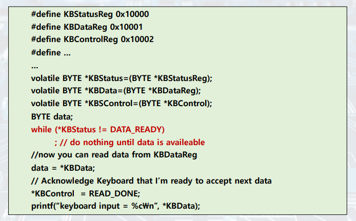 - Load(memory → I/O register) instruction 계속 진행하기 때문에 비효율적 → Interrupt로 해결